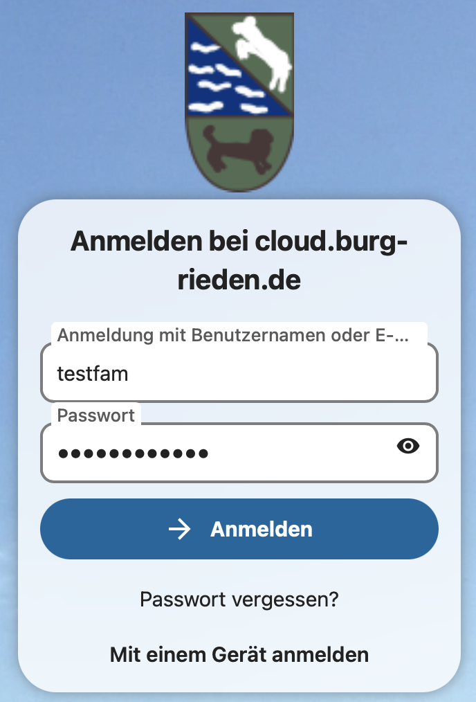 Trage sie auf https://cloud.burg-rieden.de/ ein und klicke “Anmelden”.