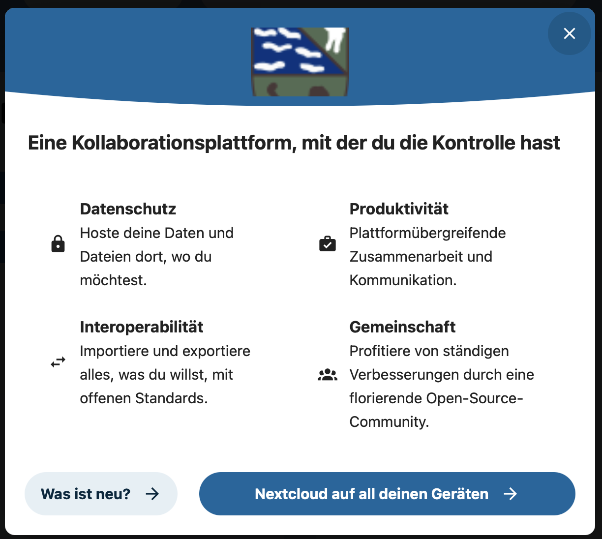 Nach Deiner ersten Anmeldung siehst Du Informationen zum Produkt “Nextcloud” und Links zur App fürs Handy.