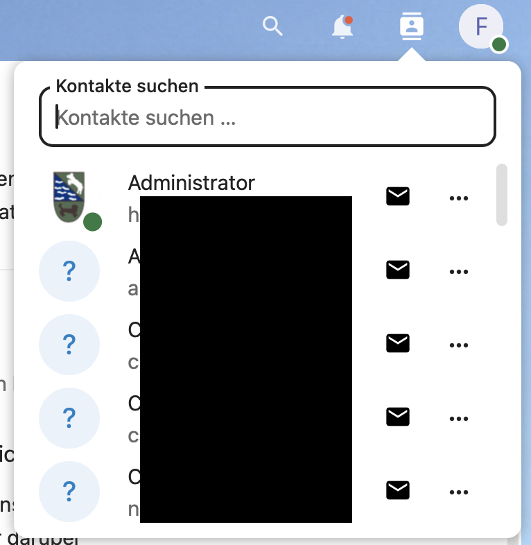 Um schnell eine Telefonnummer oder eine E-Mail-Adresse zu finden, kannst Du auf das zweite Symbol von rechts klicken und den Namen des Familienmitglieds eingeben.
